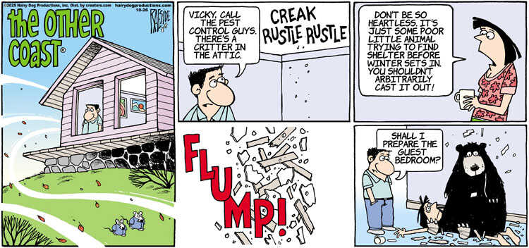 The Other Coast strip was picked up by Creators Syndicate in 2001 and now appears in over 200 newspapers worldwide. The second Other Coast collection, This Is Your First Rock Garden, Isn't It? was published in 2005.
