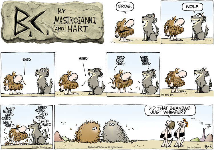 When Hart passed away, Mick's brother, Mason Mastroianni, returned home to take over the duties as B.C. head writer and cartoonist. Mick asked Mason to come on board as illustrator and to help further develop the look of Dogs of C-Kennel.