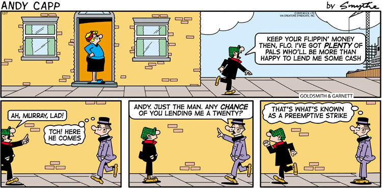 Andy Capp's appeal goes beyond the newspaper pages, however. In 1982, the cartoon was made into a musical by Manchester's Royal Exchange Theater, and productions were put on in London and all over England. And in 1988, the strip was adapted into a television series by the British Broadcasting Corporation. In addition, Andy Capp's instantly recognizable face appears on merchandise around the world, from commercials to T-shirts to hot fries.