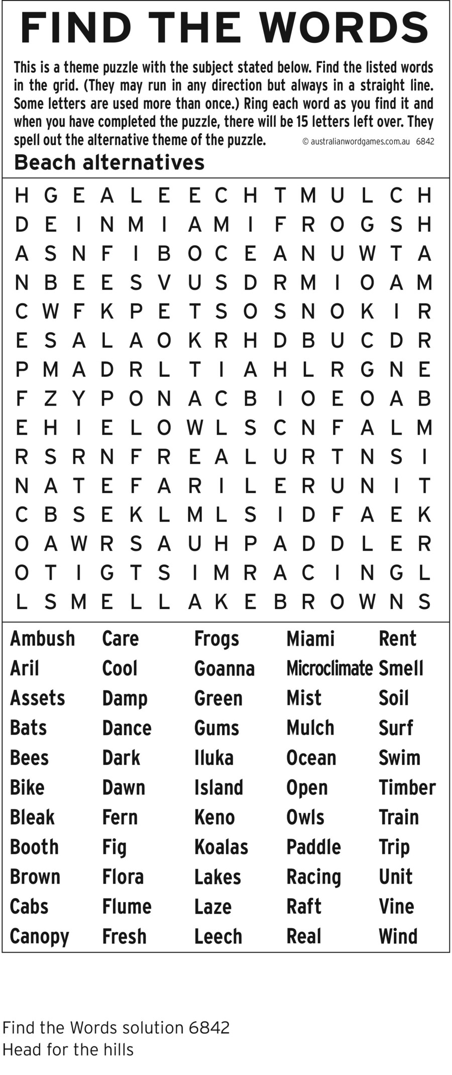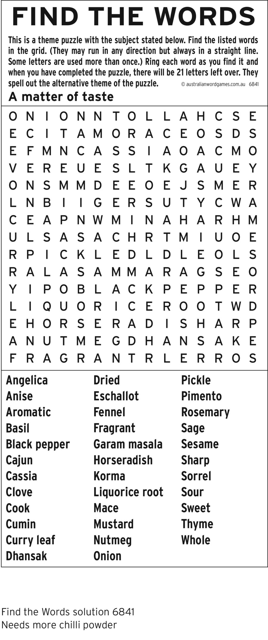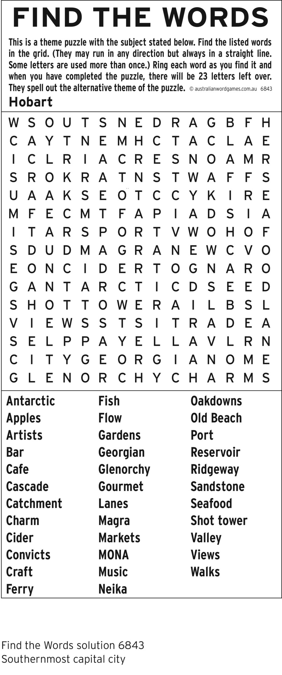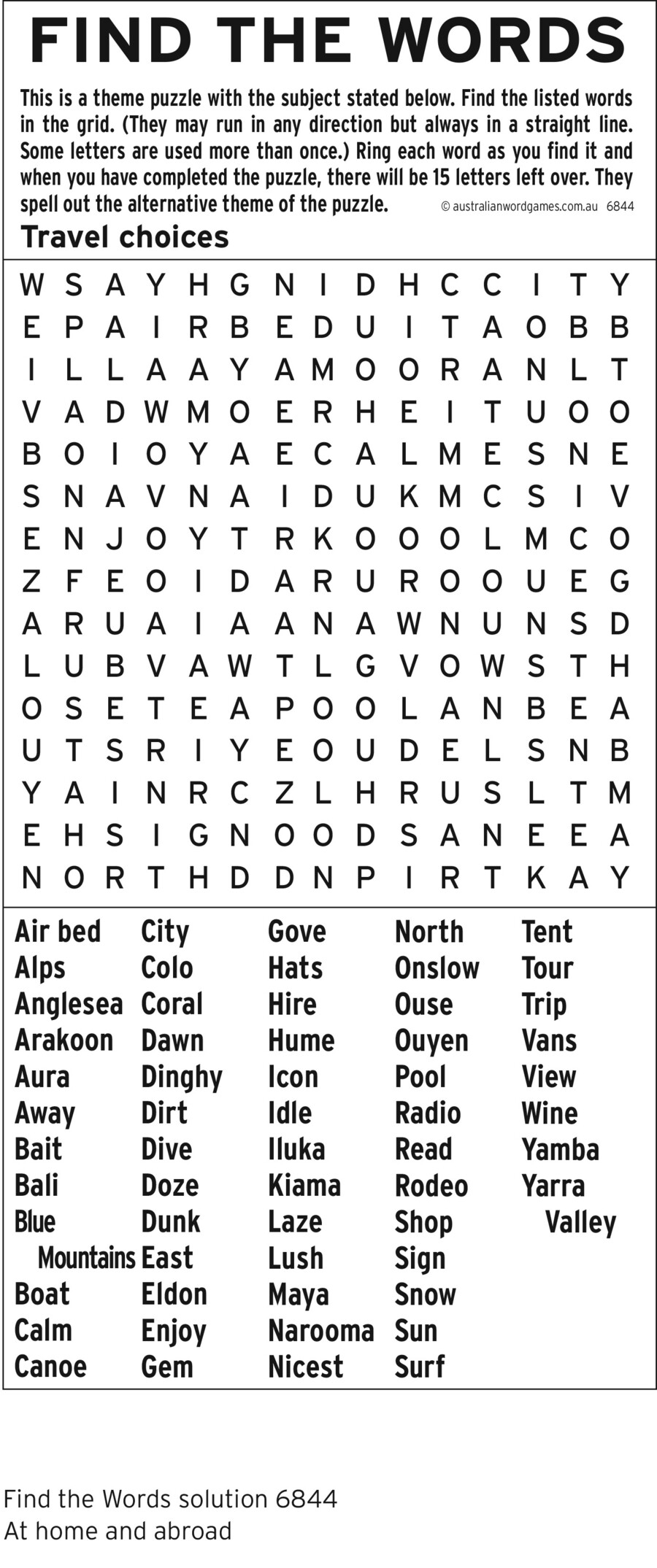 A daily wordfind with a new subject for each puzzle. Circle each word as you find it listed in the grid. Words may run in any direction, but will always be in a straight line. Keep in mind that one letter may be use multiple times.