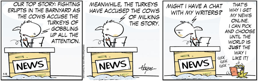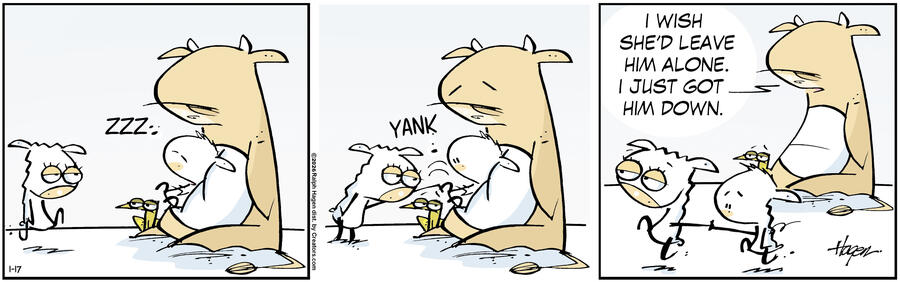 The Barn, created by Canadian cartoonist Ralph Hagen, launched nationally in October of 2008. The strip follows the daily adventures and mishaps of a curious sheep named Rory and a sarcastic bull named Stan. The storylines mimic the everyday experiences of their human captors. Set on a farm, next door to a veterinary clinic, Stan and Rory usually spend time with the owner and vet, Brenda.
