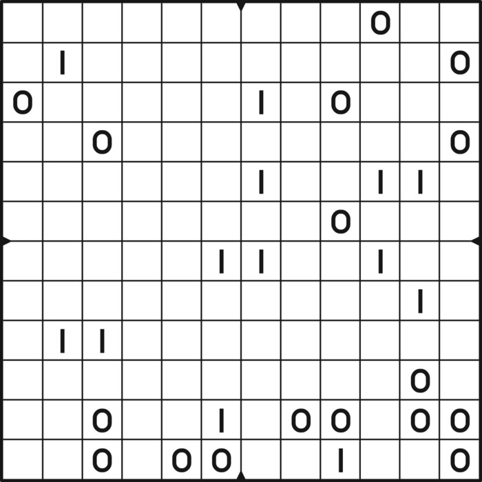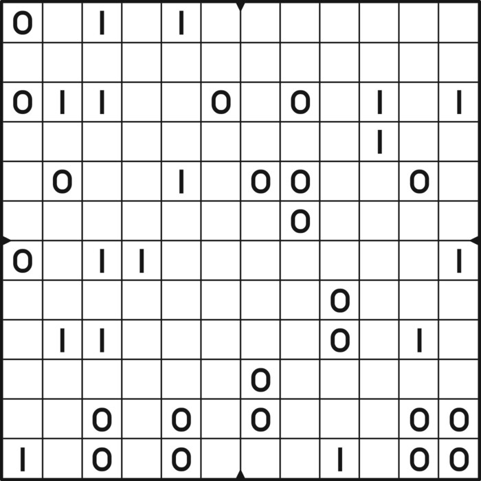 A daily binairo puzzle! Solve each puzzle with only 0's and 1's. Remember: No more than two the same numbers may be placed directly next to or below each other. Every row and every column must contain as many zeroes as ones. The combination of zeroes and ones in every row must be unique, as does the combination in each column.